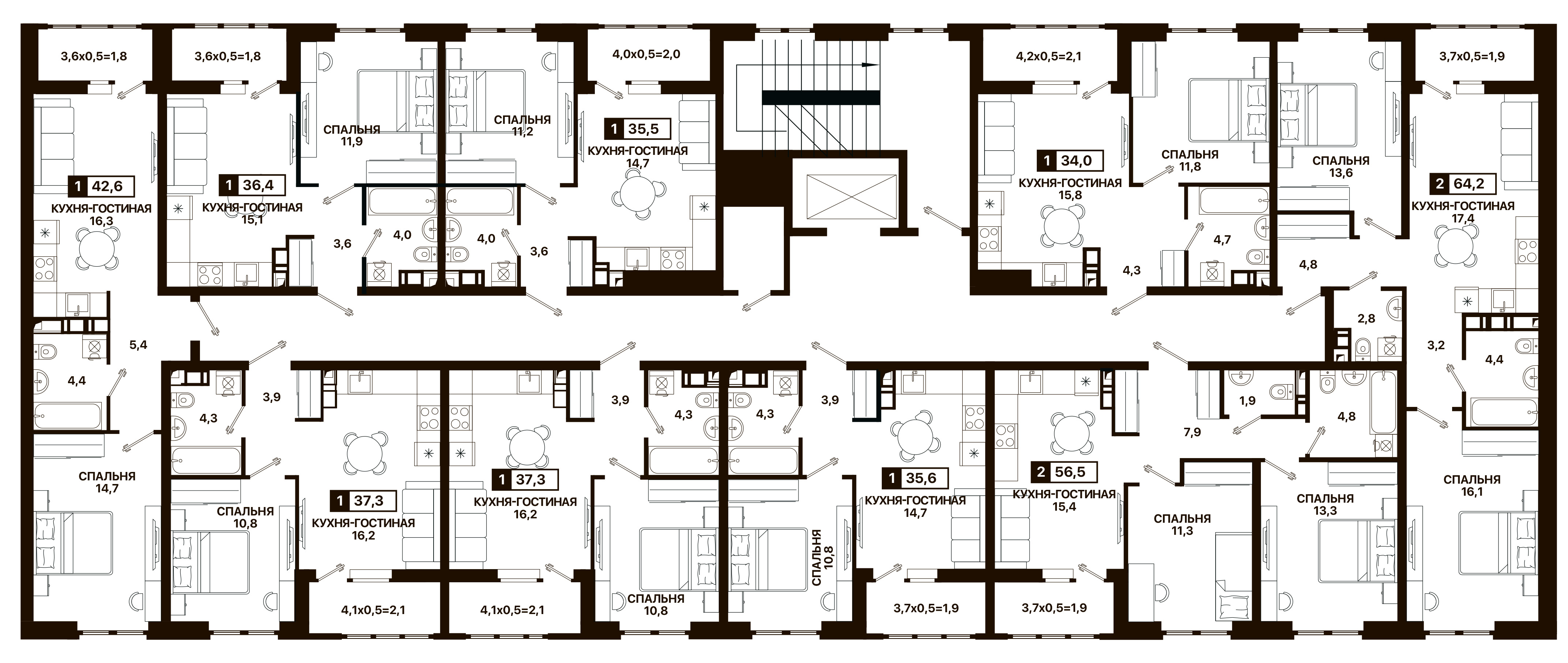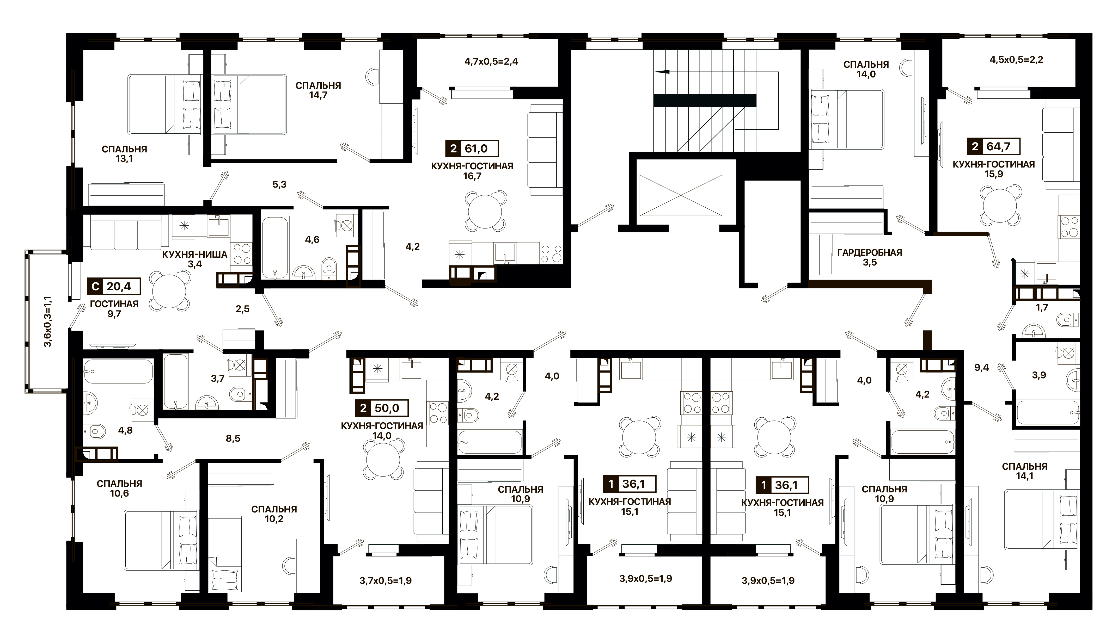 На первом этаже «Резиденции» расположены коммерческие помещения. Это возможность открыть свое дело на новых территориях РФ в числе первых. Разнообразные планировки подойдут для любого вида бизнеса.