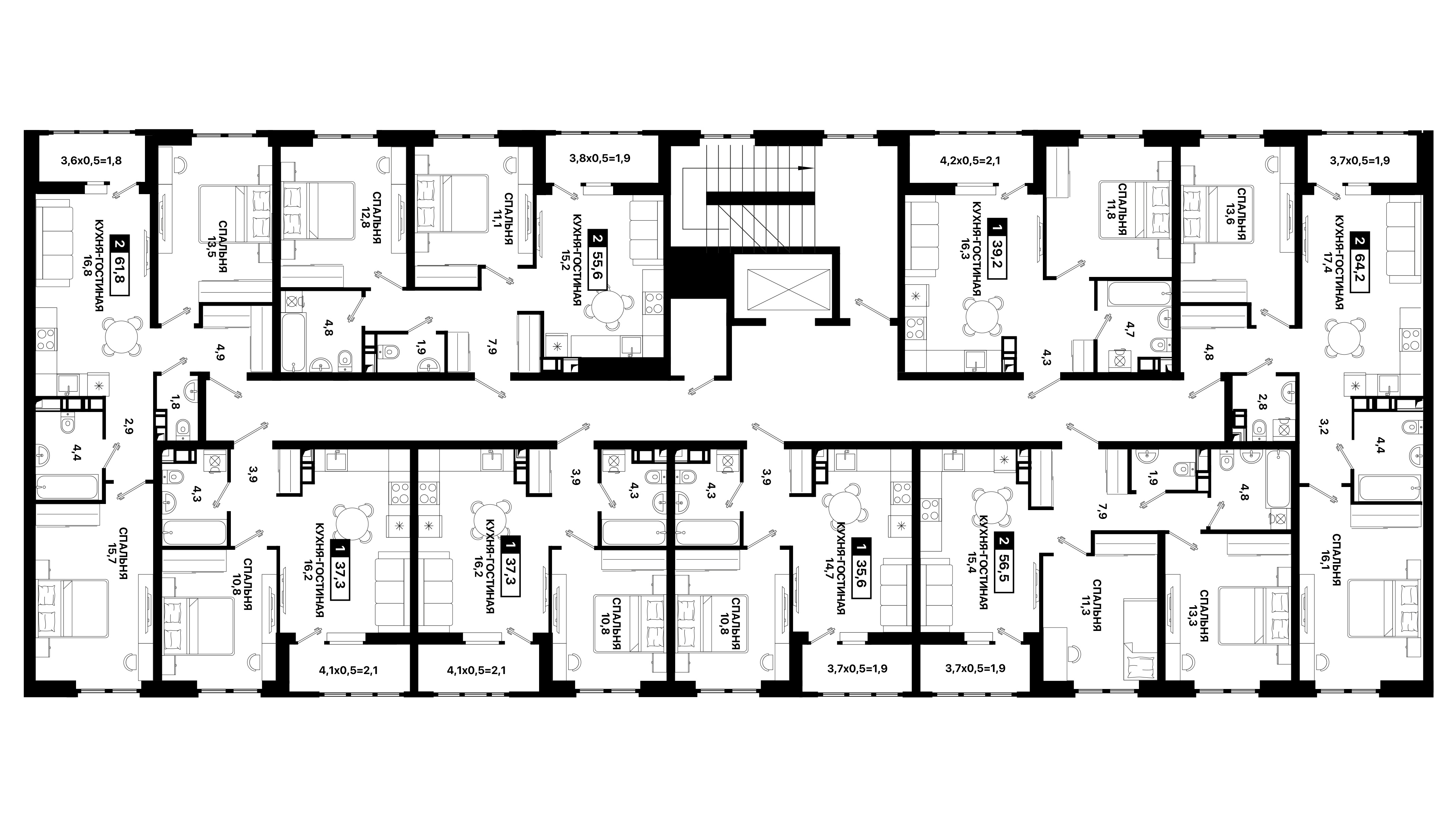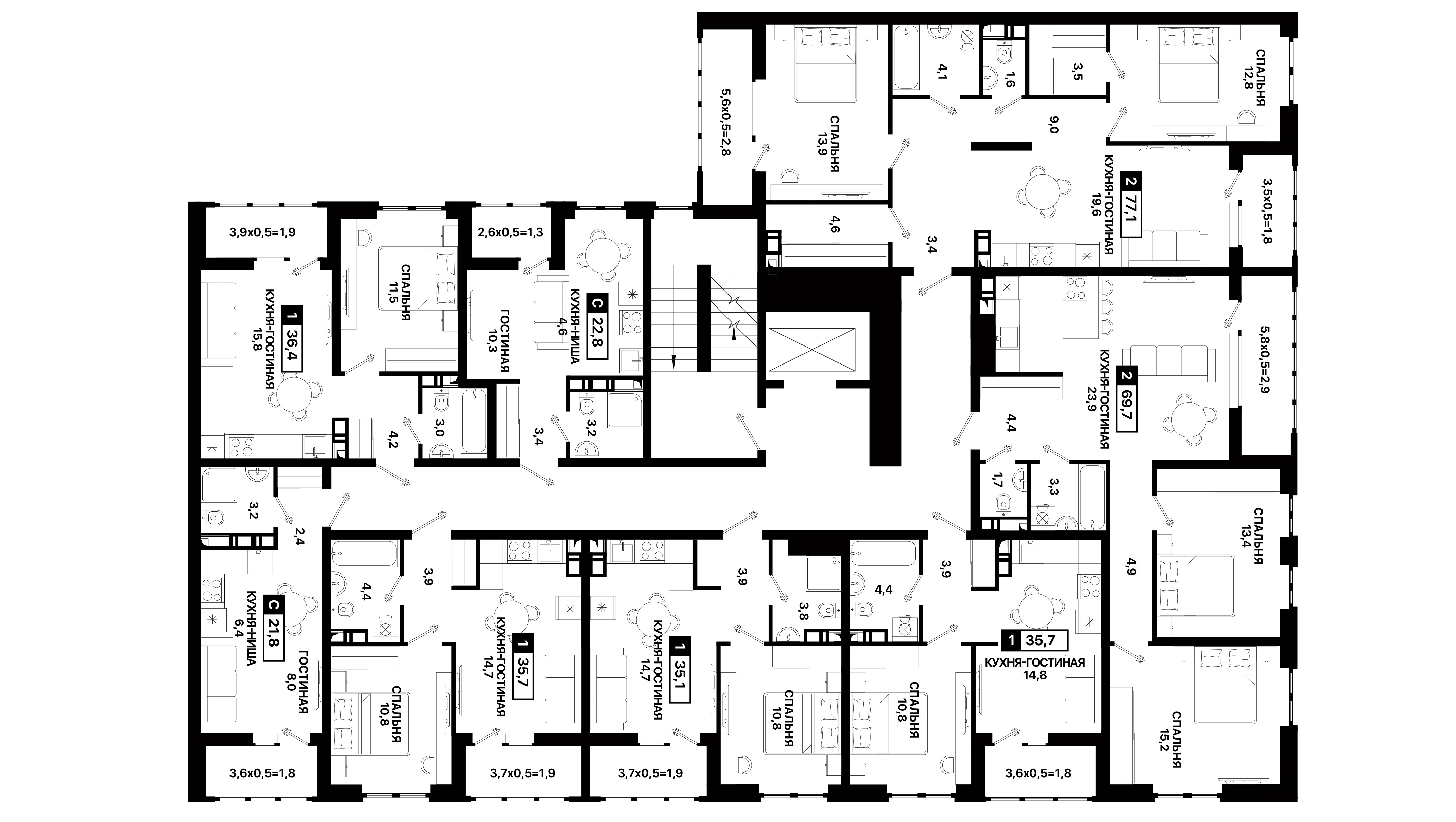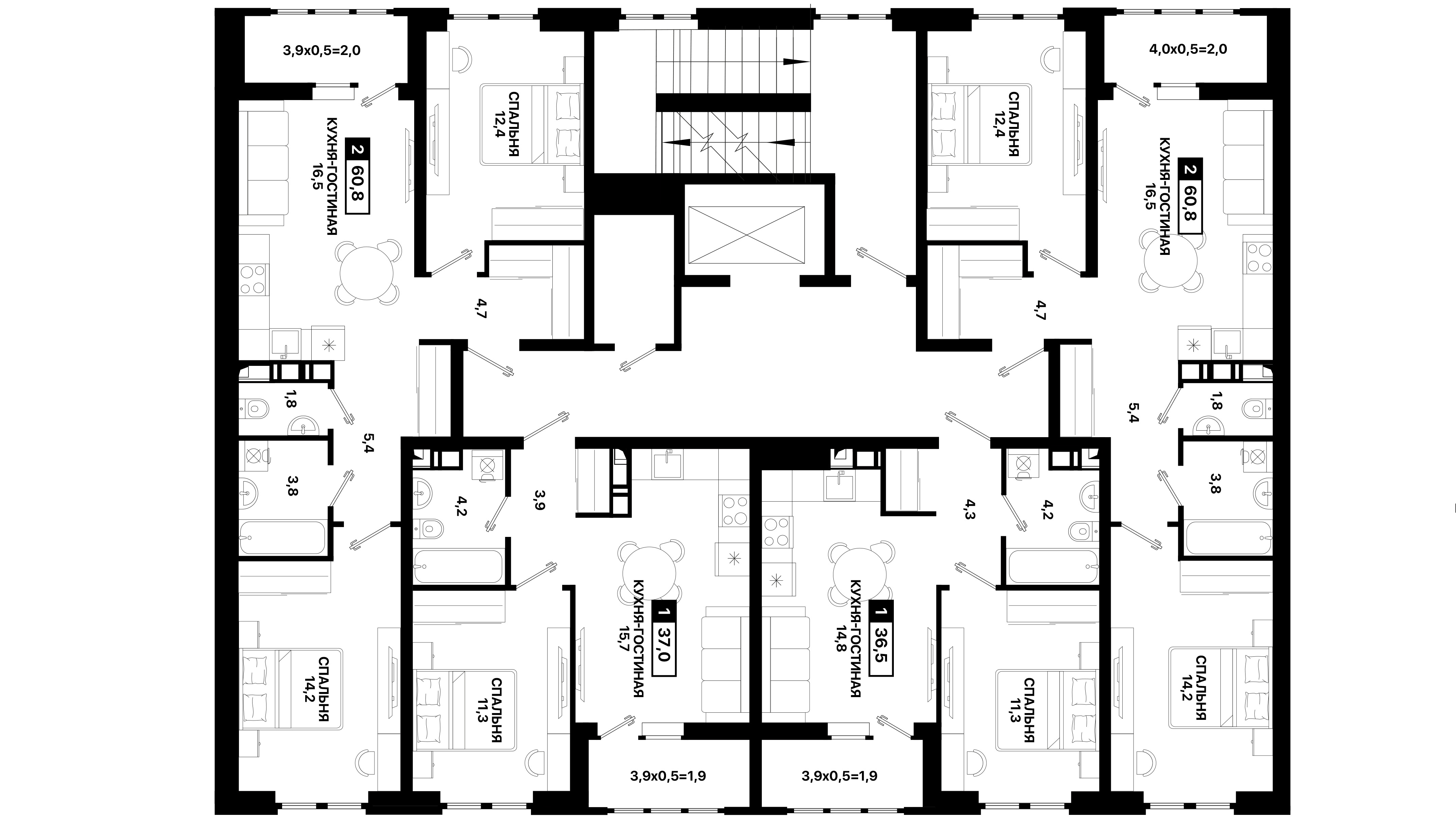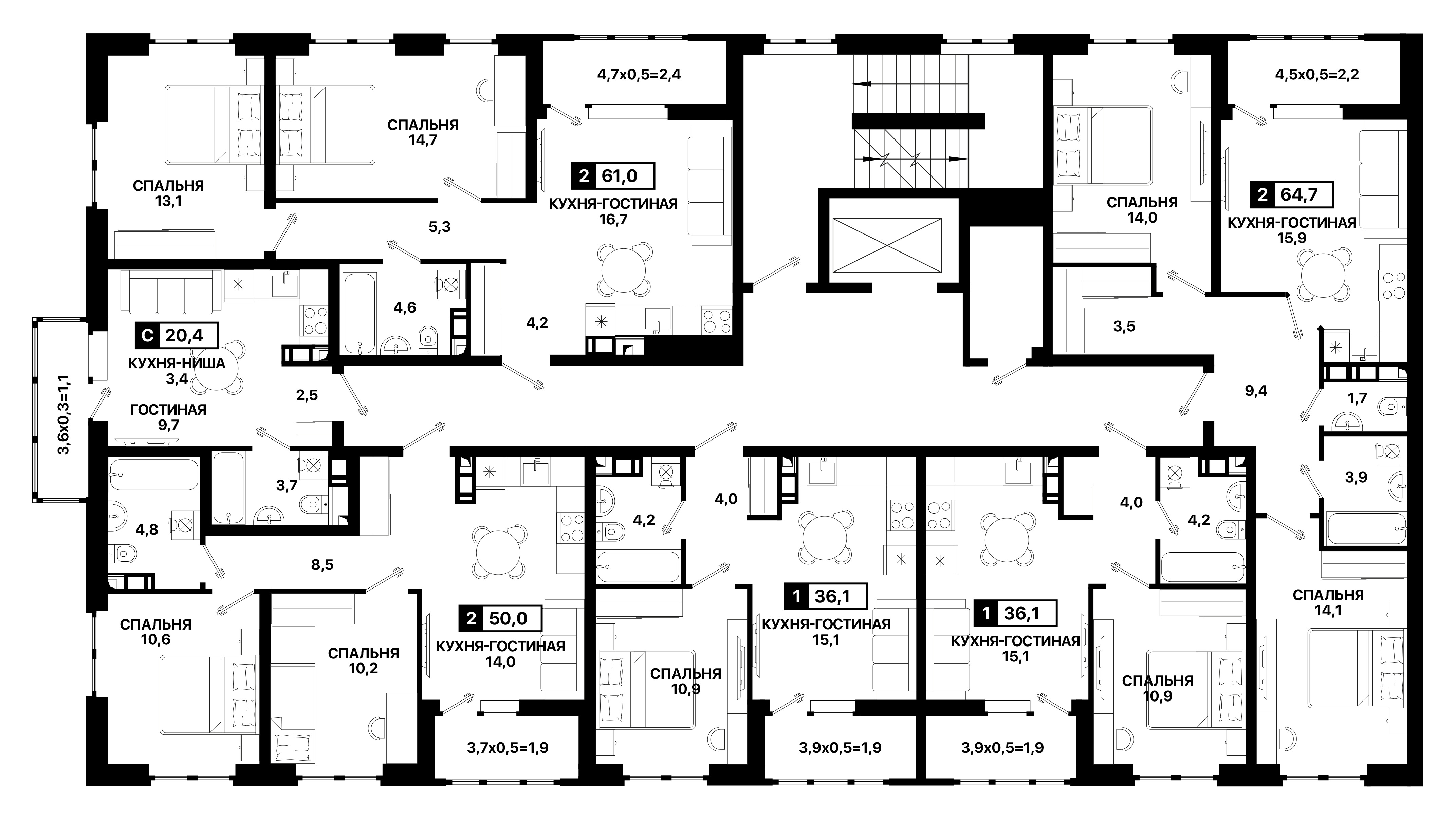 На первом этаже «Резиденции» расположены коммерческие помещения. Это возможность открыть свое дело на новых территориях РФ в числе первых. Разнообразные планировки подойдут для любого вида бизнеса.