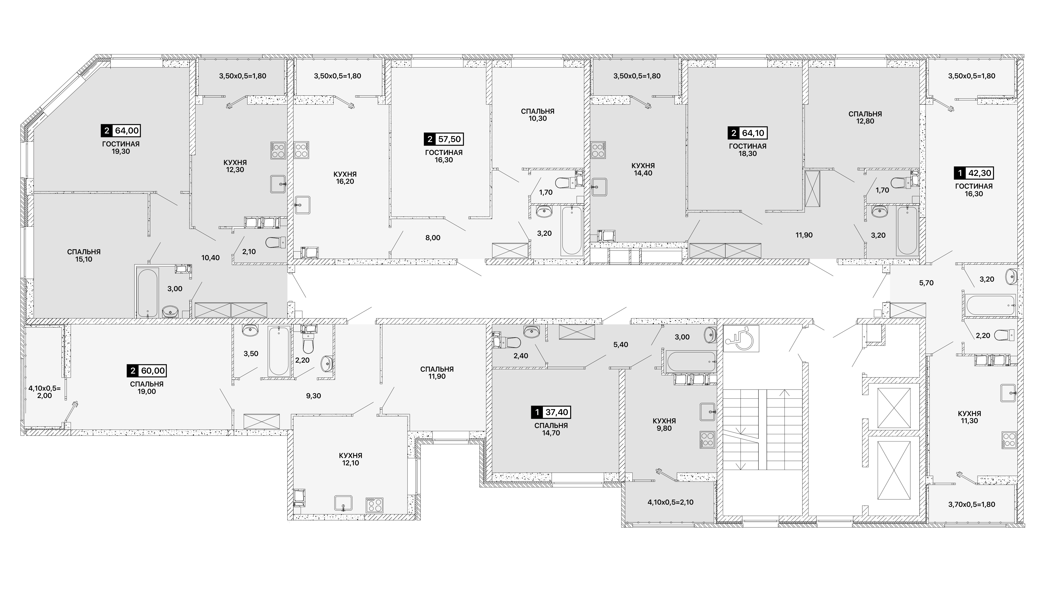 На первом этаже «Резиденции» расположены коммерческие помещения. Это возможность открыть свое дело на новых территориях РФ в числе первых. Разнообразные планировки подойдут для любого вида бизнеса.